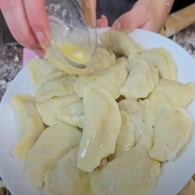 После приготовления вареники поливаем растопленным сливочным маслом и подаем к столу.