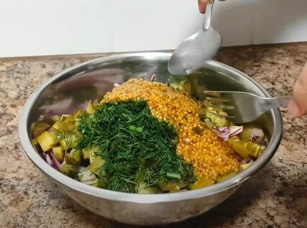 Сделать салат вкуснее поможет небанальная заправка. Обычно люди используют майонез. Но не всегда этот соус подходит ко всем компонентам в салате. Поэтому стоит экспериментировать, создавать более интересные и нетипичные варианты заправки. Такой является заправка из горчицы, растительного масла и черного перца. Она отлично сочетается с сельдью, маринованными огурцами и даже горошком.